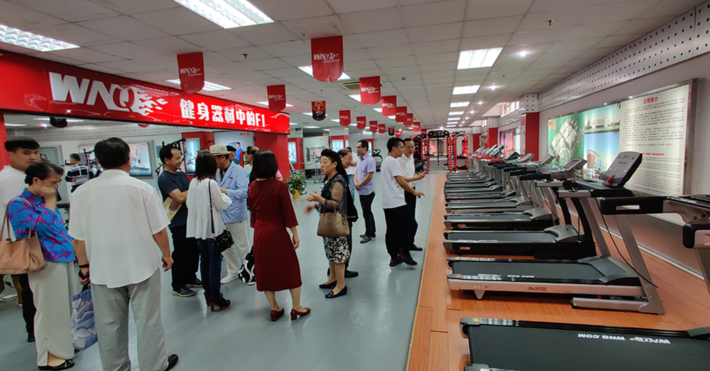 首先,來賓一行參觀考察了米蘭tiyu的文化長廊,對我司的發展歷程、企業文化、企業特色等方面進行初步了解。在參觀一樓與負一樓展廳過程中,來賓一行對米蘭tiyu種類齊全的健身器材表現出濃厚的興趣。