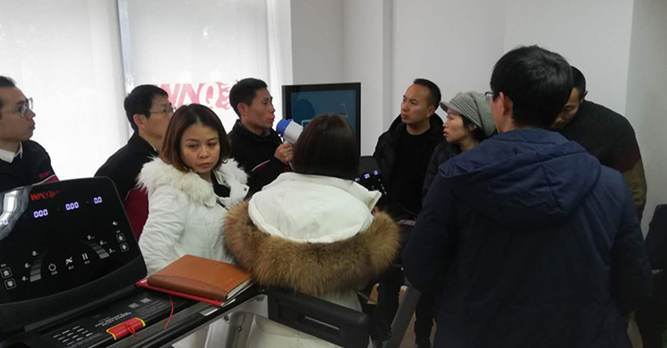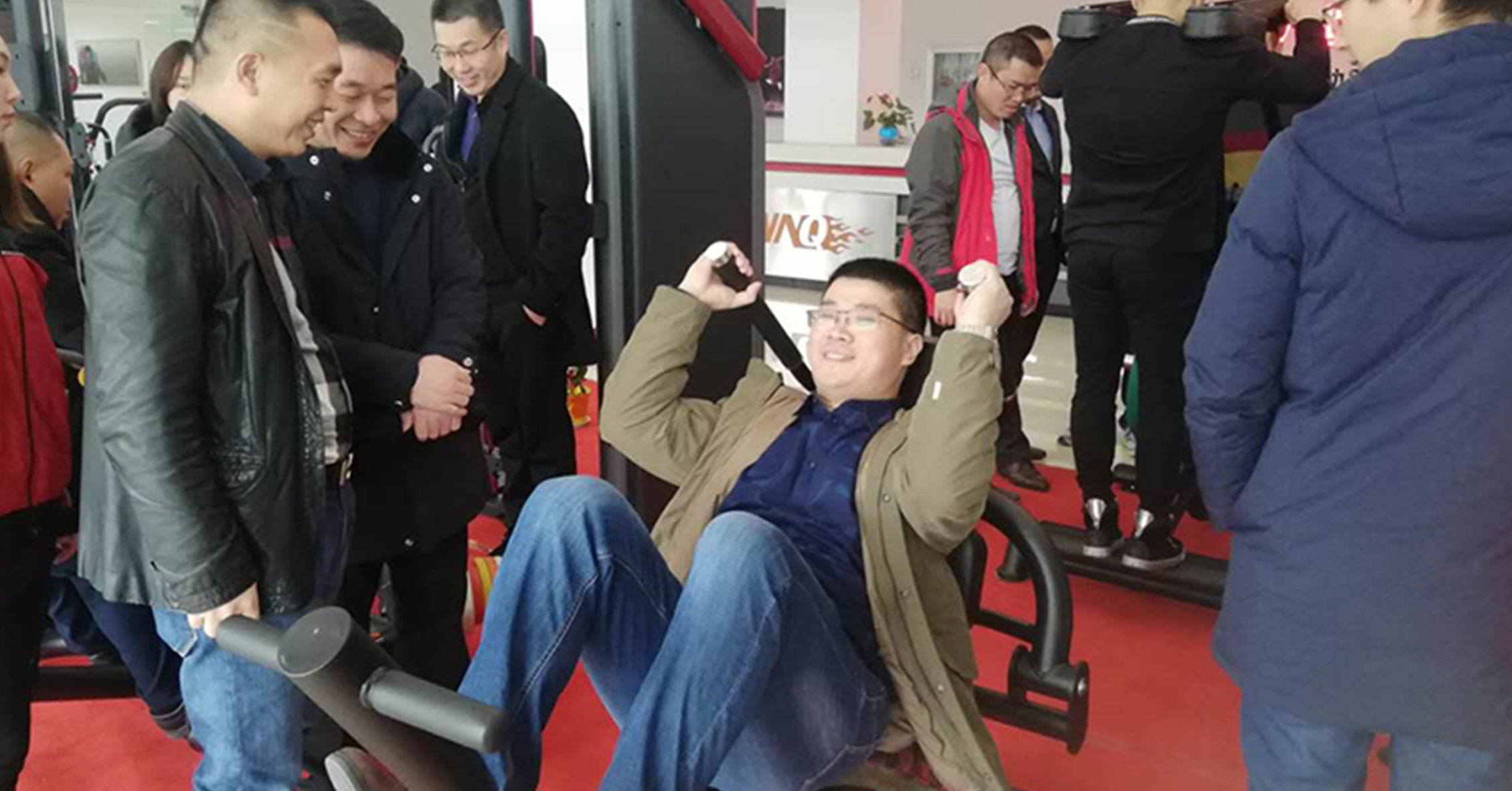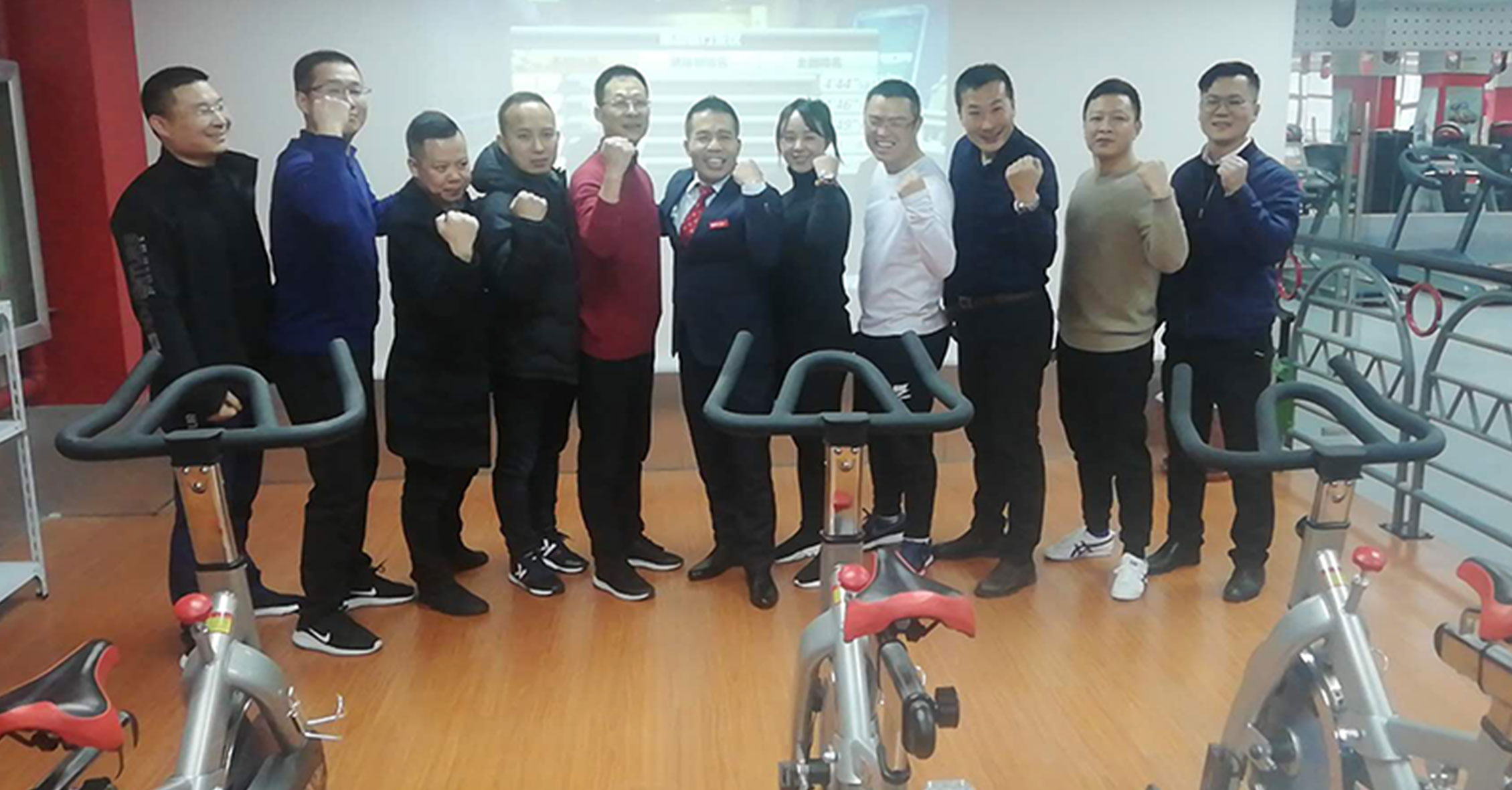 在展廳,我司組織了一場單車競賽,經(jīng)銷商們踴躍參與。最新開發(fā)的單車競賽系統(tǒng)給單車競賽增添了許多新的趣味。比賽過程中大家高喊助威,最終前三名都獲得動感單車獎勵!